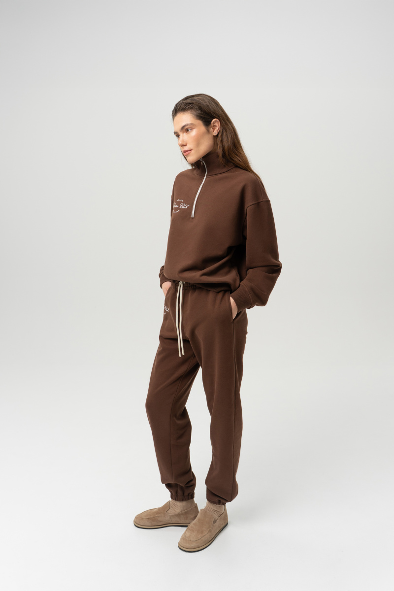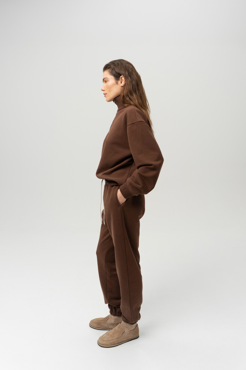 Джогеры из мягкого велюрового трикотажа. Прямой крой, пояс-кулиска на шнурке, внизу резинка.