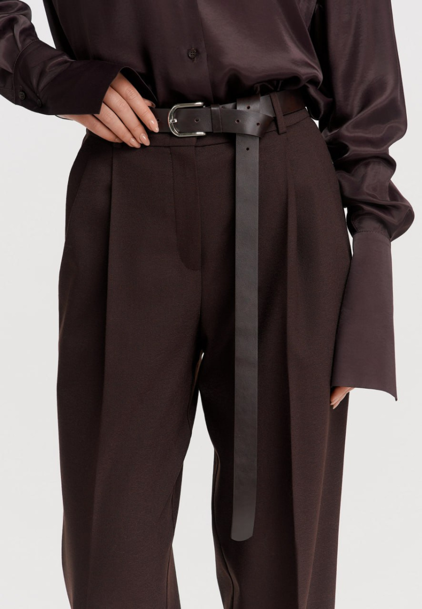 Классические прямые брюки с отрезным поясом на корсажной ленте, по поясу шлёвки.