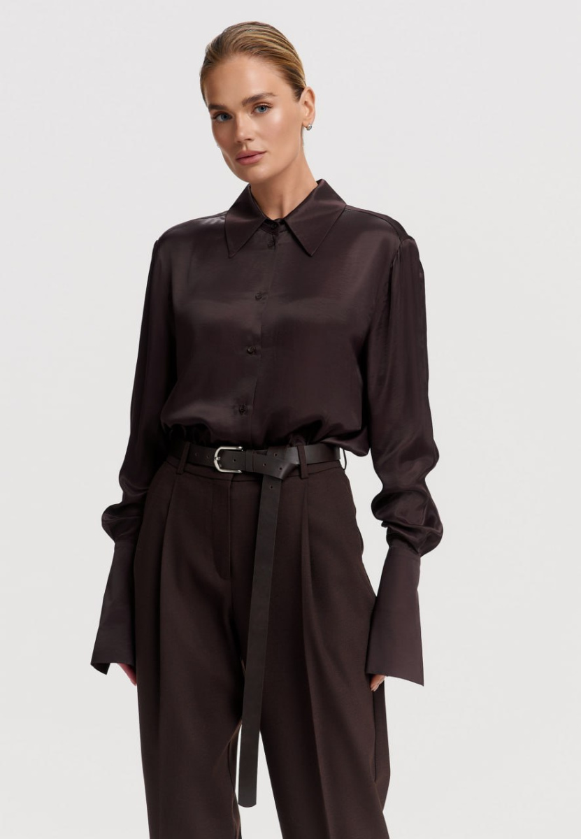 Классические прямые брюки с отрезным поясом на корсажной ленте, по поясу шлёвки.