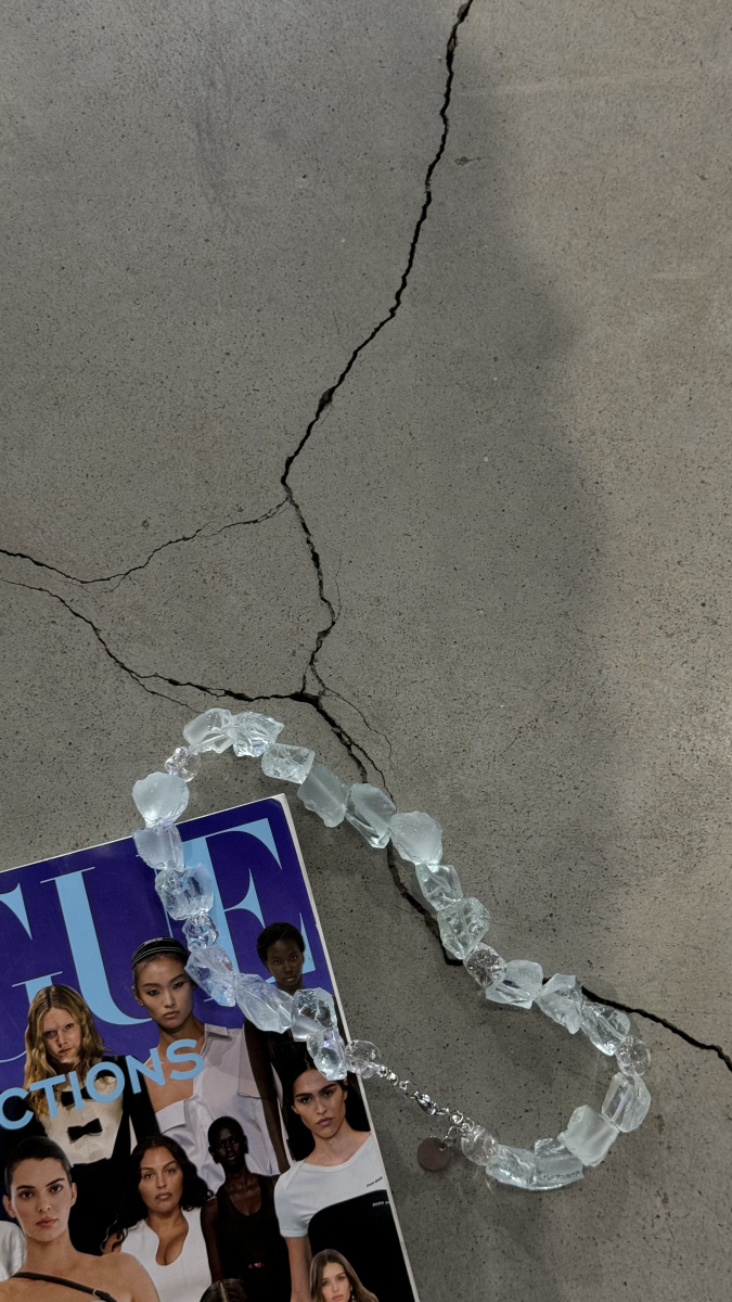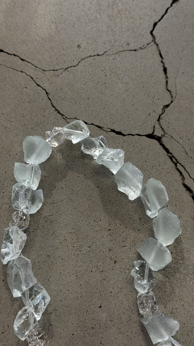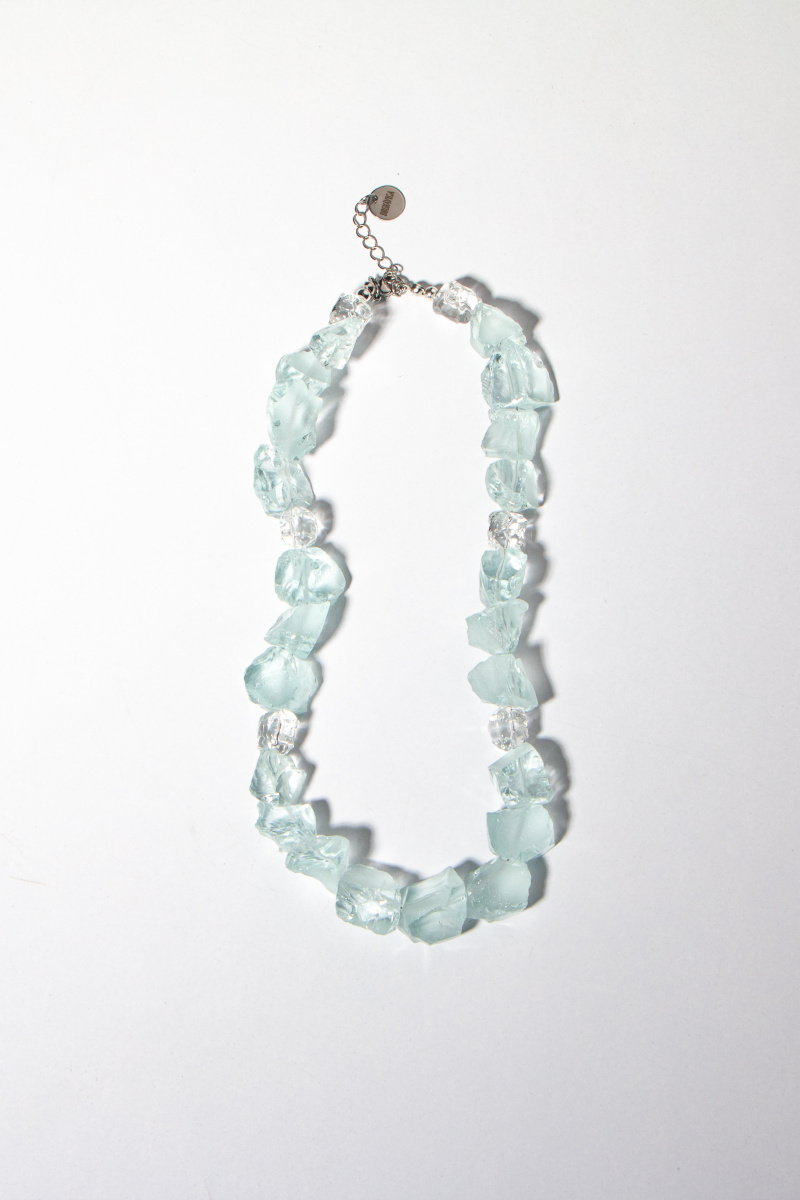 Прочность необработанного кварца и сияние горного хрусталя в одной паре бус цвета нежной прозрачной лазури.
