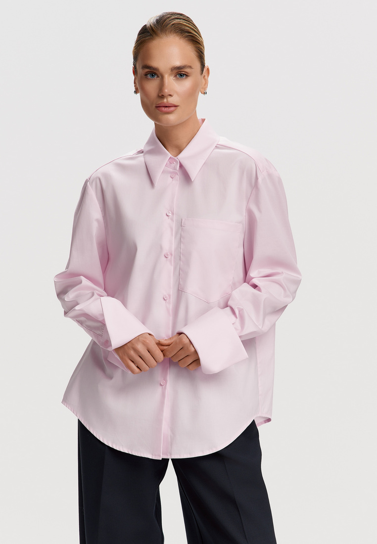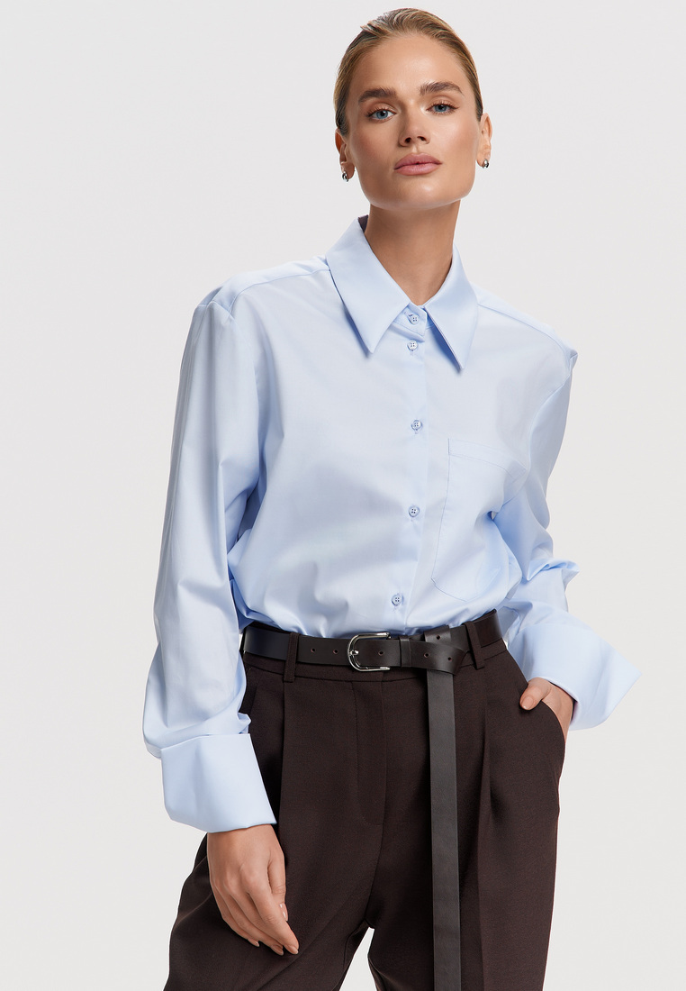 Блузка из вискозы шоколадного цвета в свободном стиле с классическим отложным воротником и длинными рукавами с высокими манжетами. Модель застегивается на пуговицы по всей длине. Идеальна для создания комфортного и стильного образа с элементами casual и делового стиля, отлично сочетается с брюками и юбками.