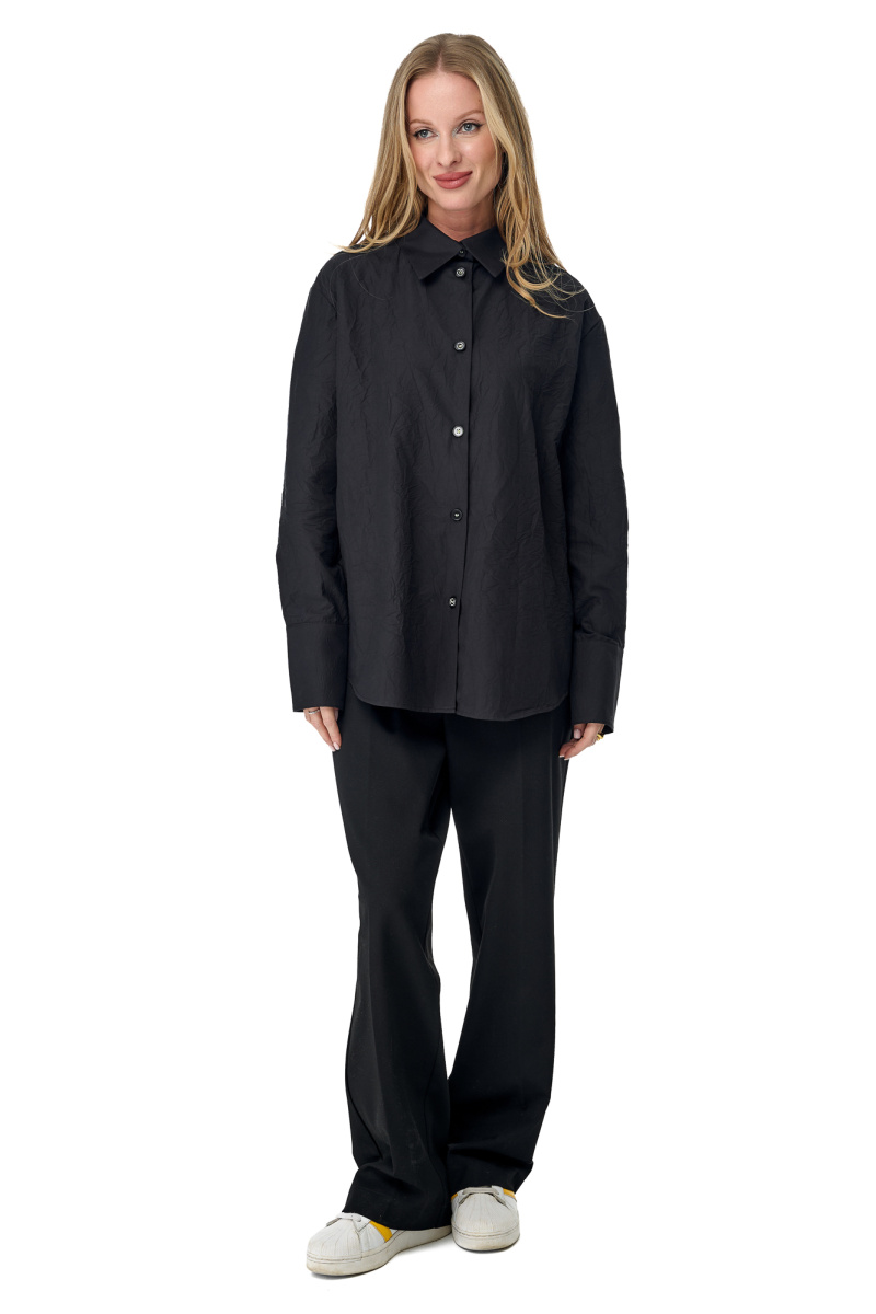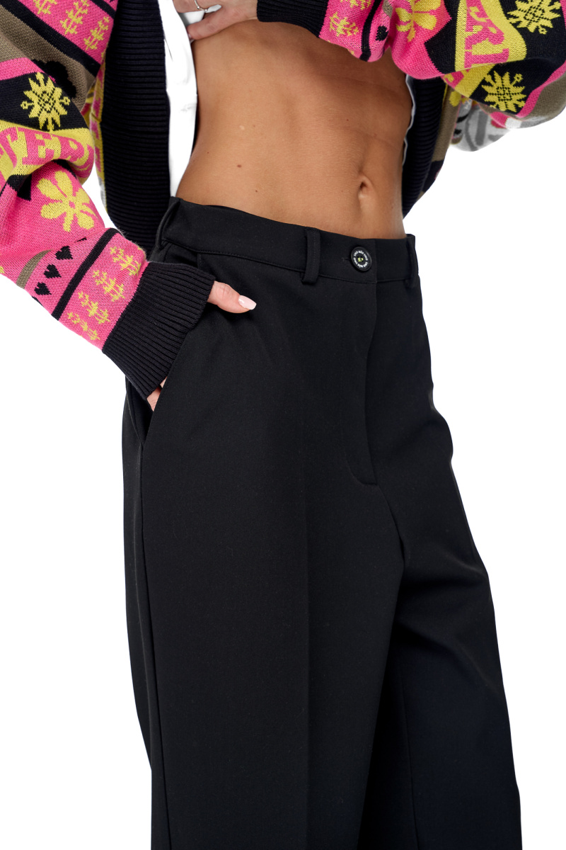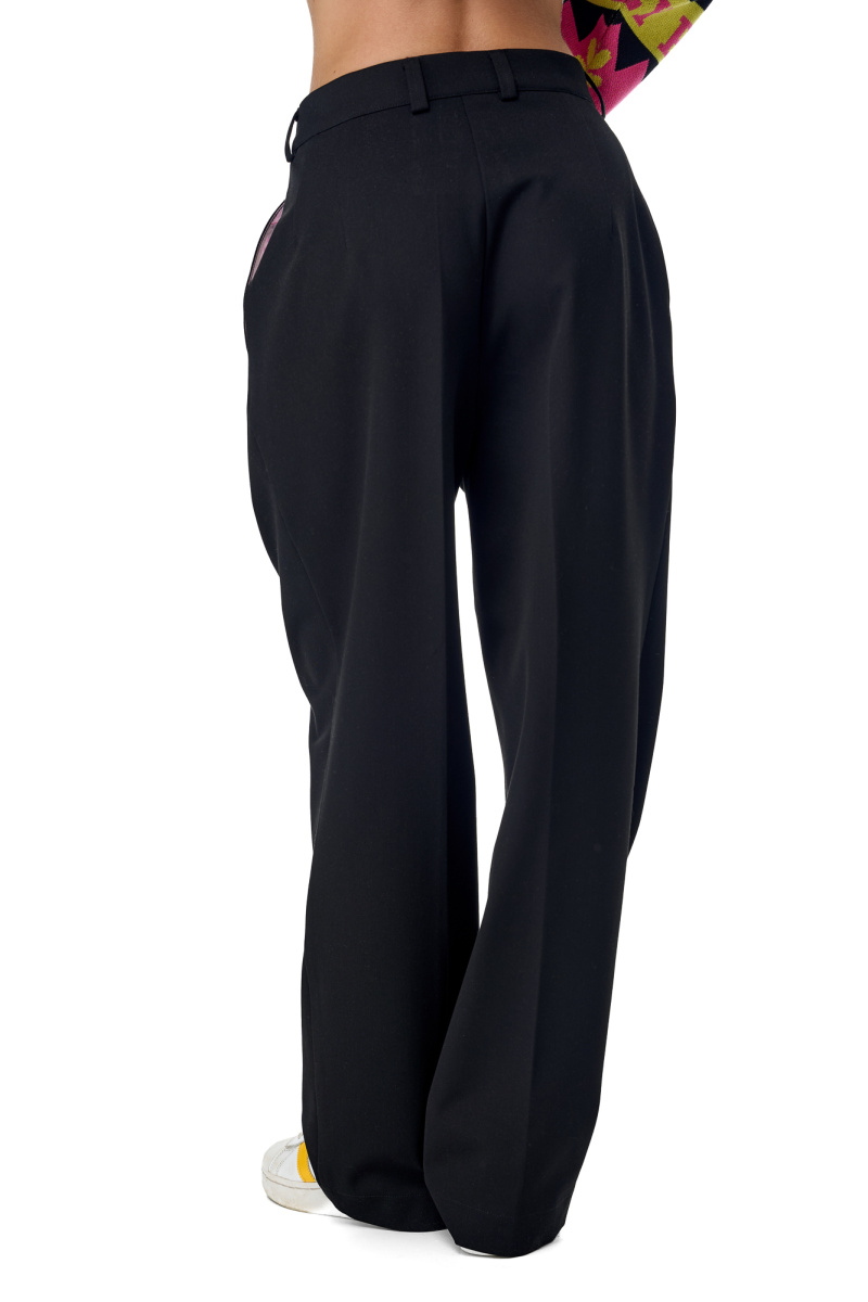 Классические брюки с умеренным объемом из черной плотной ткани.