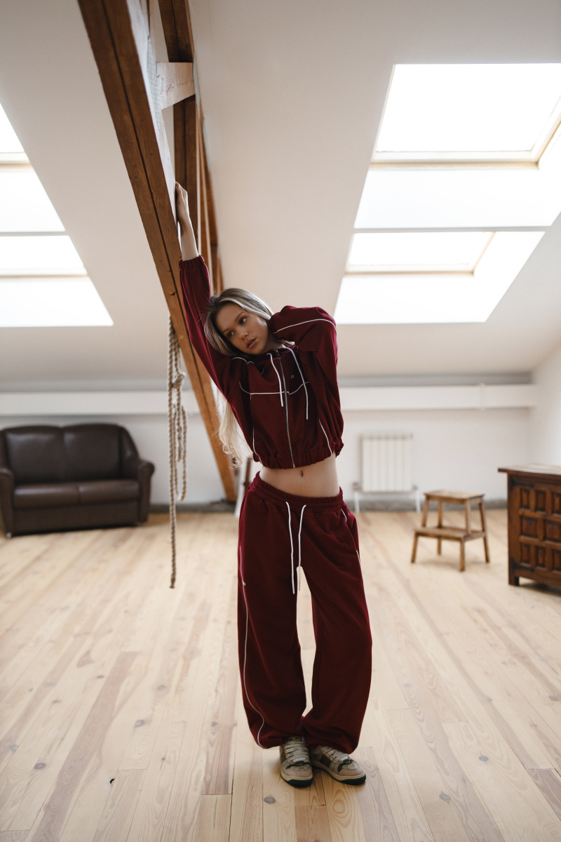 Брюки идут с кулисами по низу, что позволяет затянуть и превратить прямые брюки в джоггеры.