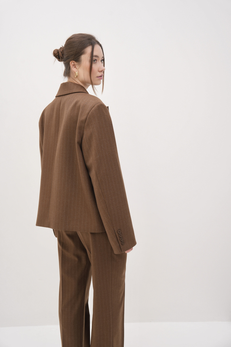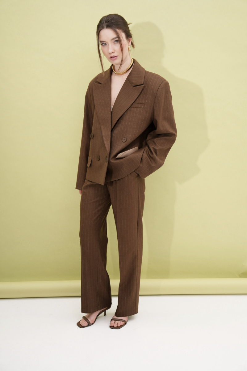 Брюки трубы PRE-SPRING в цвете шоколад прямого силуэта со стрелкой идеальны для создания расслабленного стильного образа. Тонкая полоска удлиняет силуэт, а сами брюки можно носить отдельно или в комплекте с жакетом PRE-SPRING.