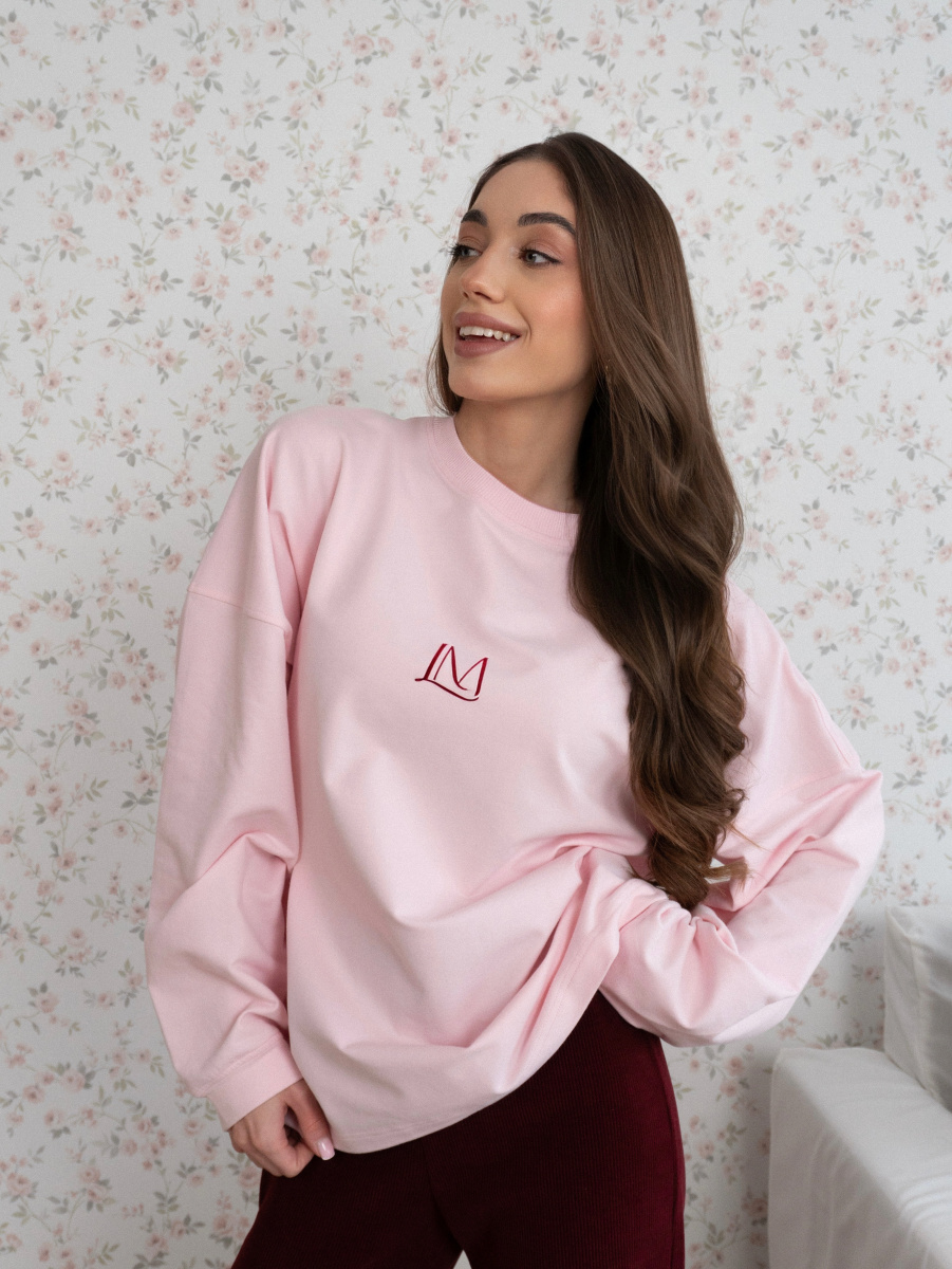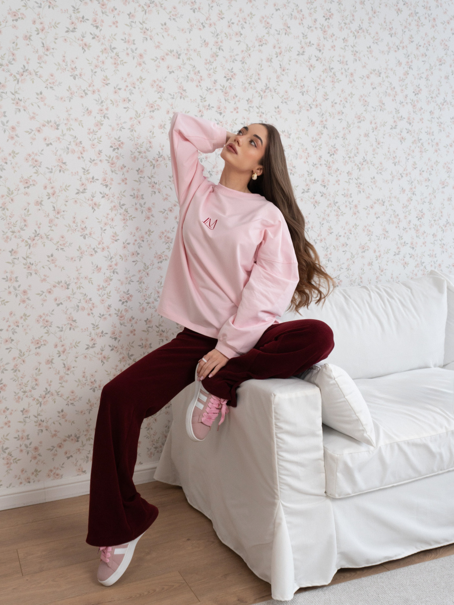 Лимитированная коллекция HUG. Нежный женский лонгслив с эффектом велюра — мягкий и приятный на ощупь, украшен изящной бархатной печатью лого на груди и надписью на спинке. Идеален для создания уютных и стильных образов.