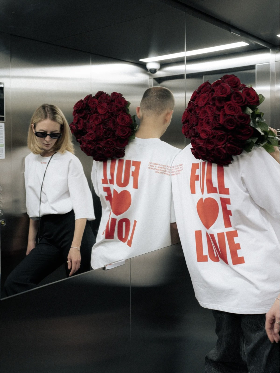 Лимитированная футболка с акцентным принтом на спинке — про эмоции и предстоящий праздник. Подходит как для девушки, так и для парня, поэтому станет отличным парным подарком.