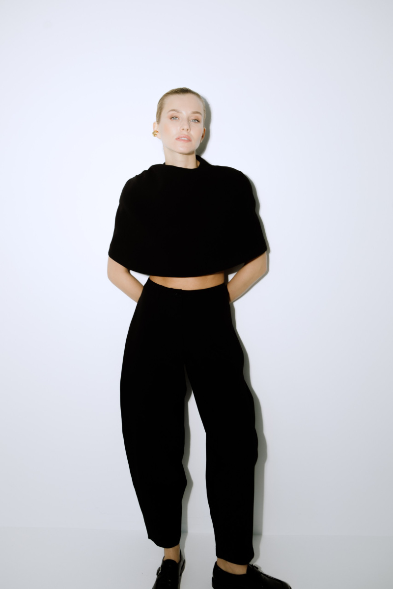 Кейп прямого кроя, создающий безупречную линию. Ключевая деталь — выразительные декоративные складки на правом плече, которые добавляют объём и скульптурность.