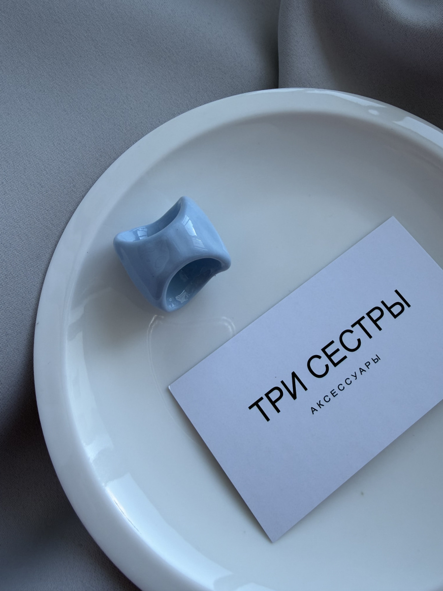 Кольцо неровной формы выполнено вручную из французской глины, покрыто акриловыми красками и ювелирной глазурью