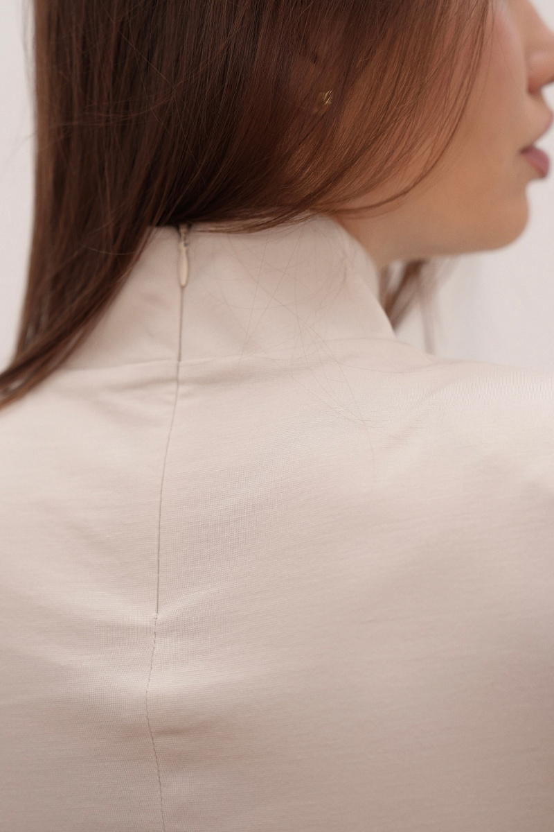 Базовая модель с изящным горлом. Создан для тех, кто ценит минимализм и функциональность. Он отлично сидит, легко комбинируется с разными низами. Особая деталь — аккуратные подкладки на плечах, которые добавляют образу четкости и архитектуры.
