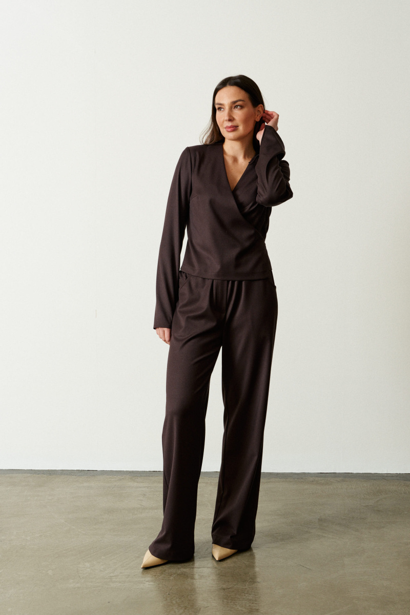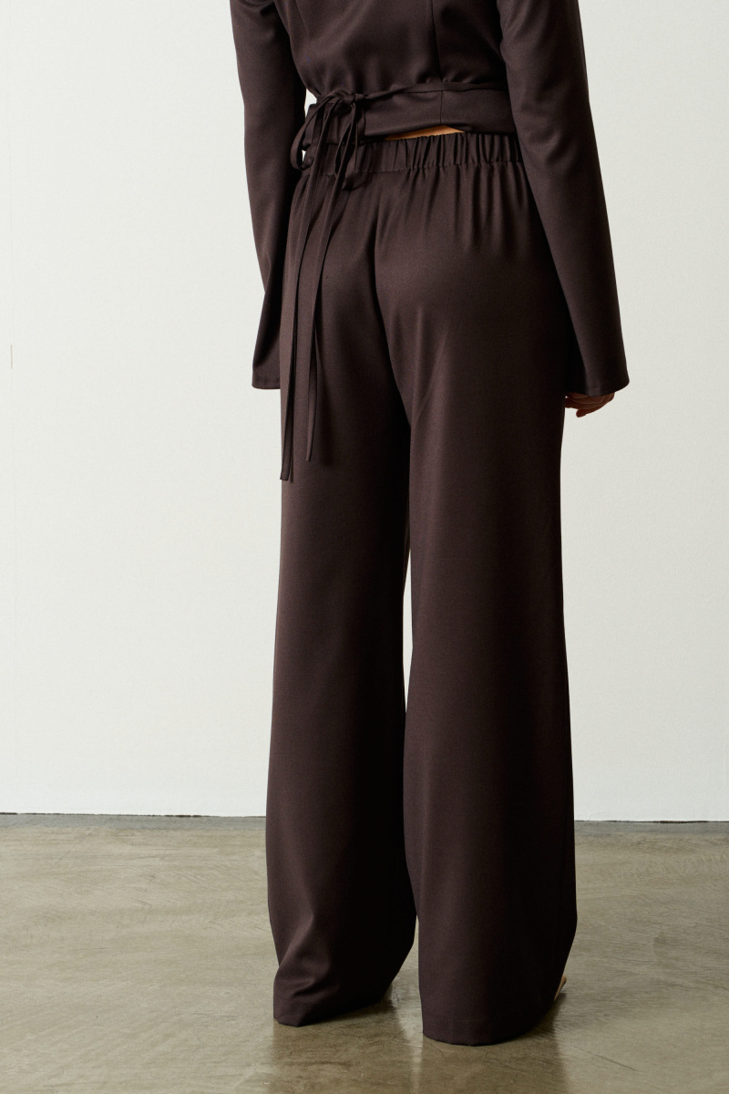 Брюки палаццо — модель прямого кроя, легко вписываются и в деловой стиль и в повседневные образы. Они выполнены из приятной на ощупь ткани, которая держит форму, не требует сложного ухода и сохраняет аккуратный вид в течение всего дня.