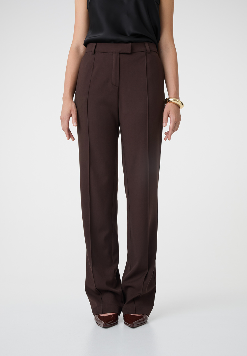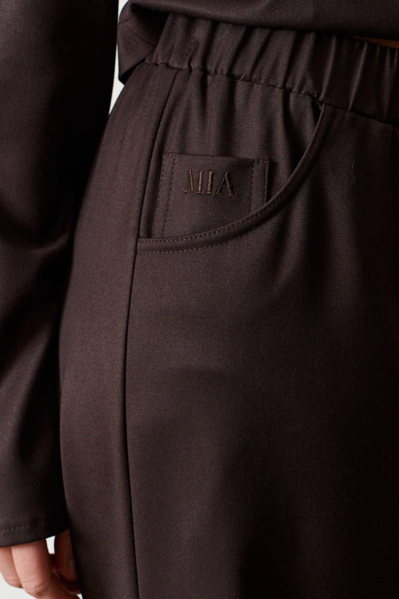 Средняя посадка с комфортной резинкой на талии мягко фиксирует силуэт. Клапан,имитирующий застёжку на молнию, добавляет строгость и завершенность.