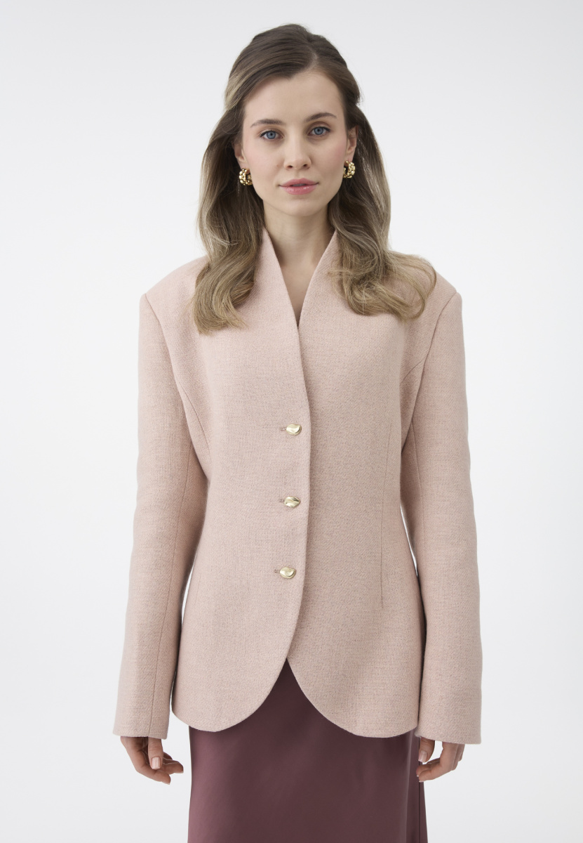 Изготовленное из плотной ткани, жакет держит форму, не мнётся и не скатывается, сохраняя роскошный вид даже после длительной носки.