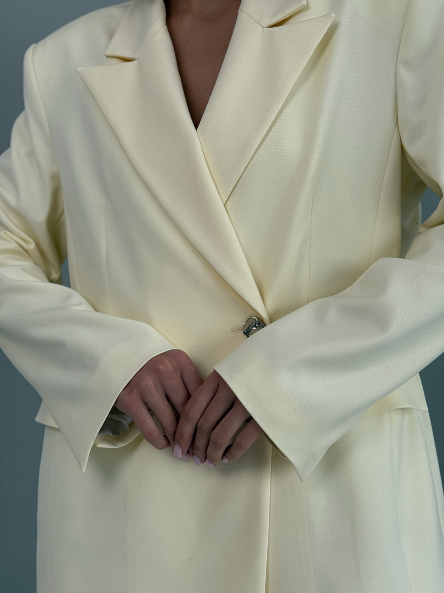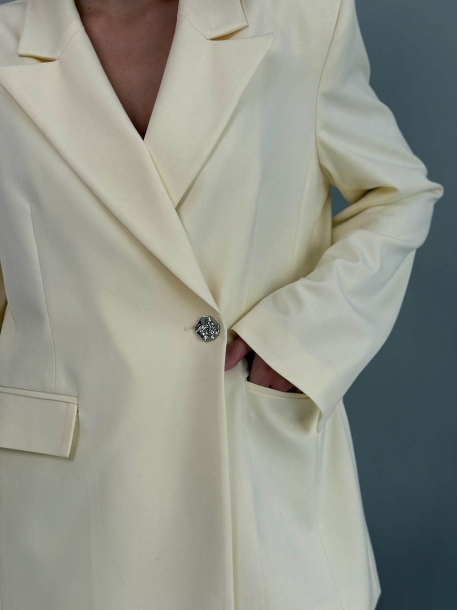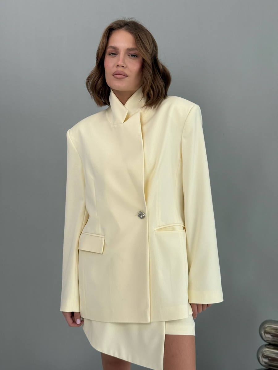 Основная ткань - вискоза 60%, полиэстер 40%. Подкладка - вискоза 50%, полиэстер 50%.