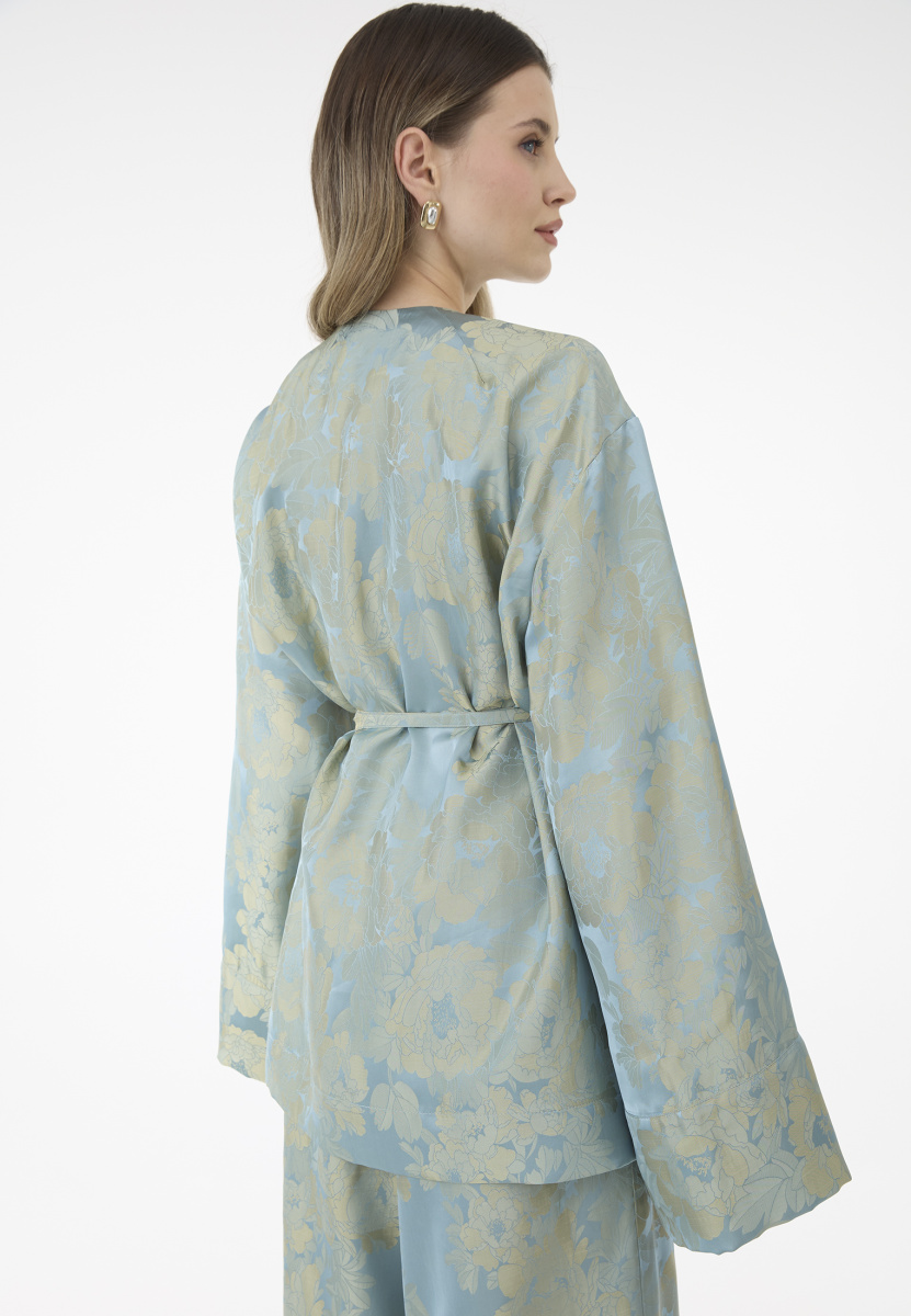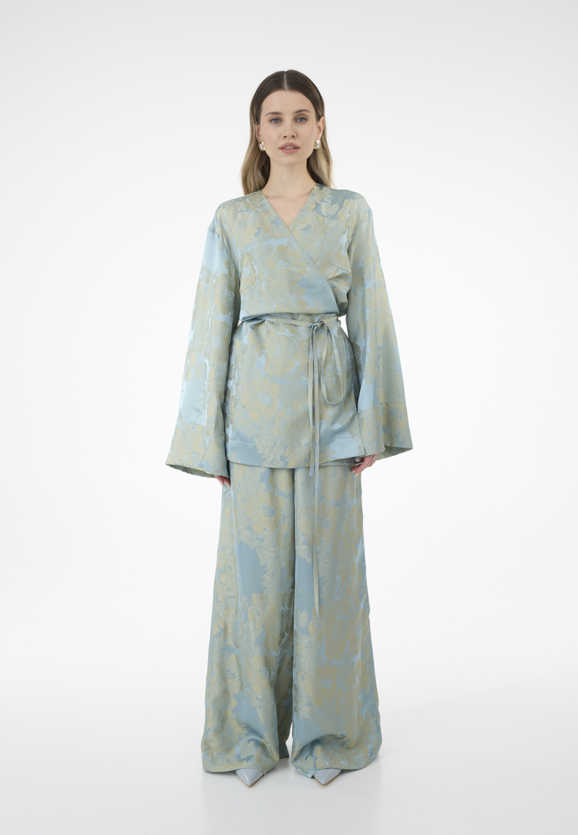 Кимоно в едином размере подходит на обхват груди до 105 см, брюки подходят на обхват талии до 74 см, на обхват бедер до 100 см.