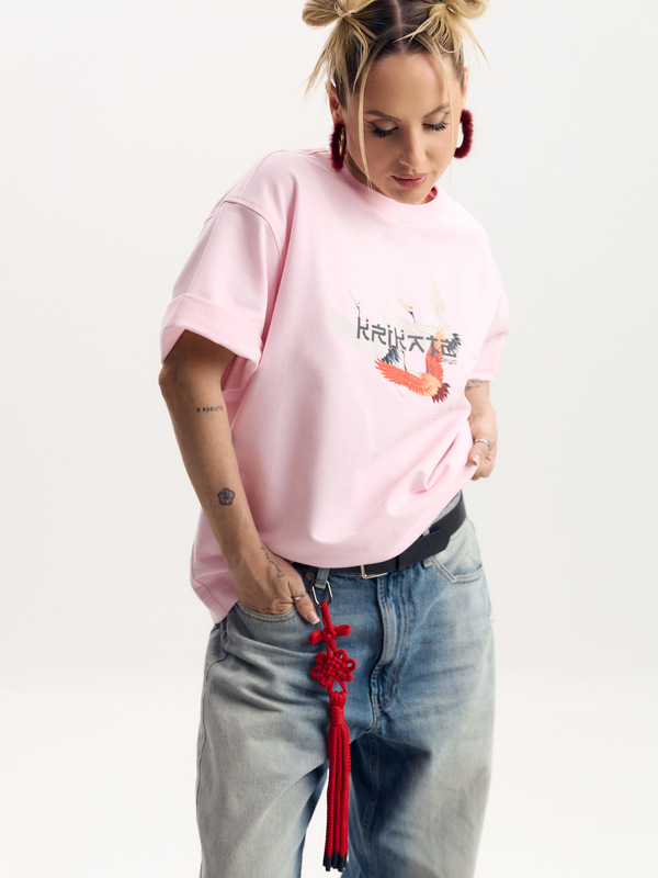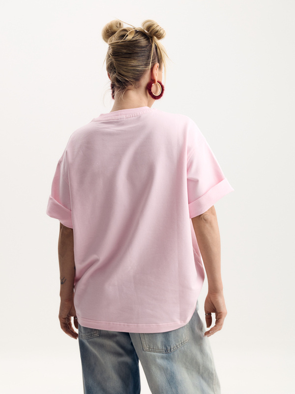 Свободный силуэт футболки создает необъятную легкость и свободу самовыражения. Футболка из хлопка с круглым вырезом горловины. Футболка с акцентным принтом спереди.
