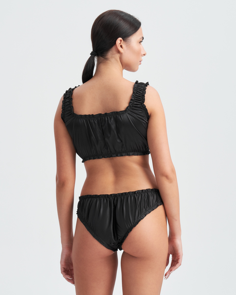 Короткий топ можно сочетать с пижамными шортами и трусиками, халатом и штанами из нашей коллекции. Выполнен из сатина — мягкого хлопкового материала с матовым, шелковистым сиянием.