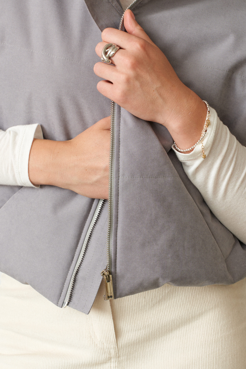 Жилетка выполнена из непромокаемой, непродуваемой,  обладающей высоким воздухообменом мембраны. Благодаря крою оверсайз и широкой пройме рукава жилетка  не стесняет движения. Легкая,  удобна для прогулок и активного отдыха и обеспечивает комфорт в любую погоду.