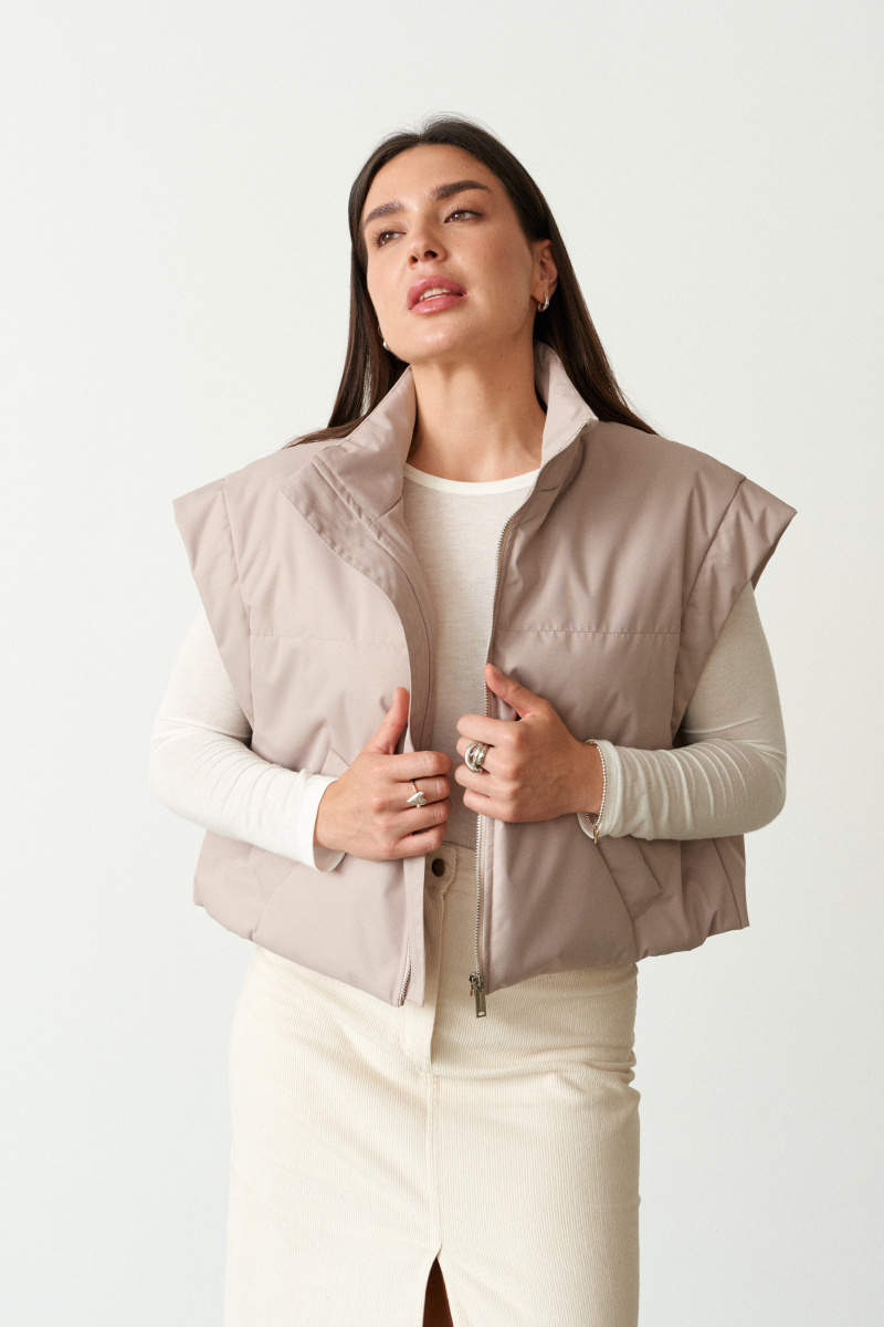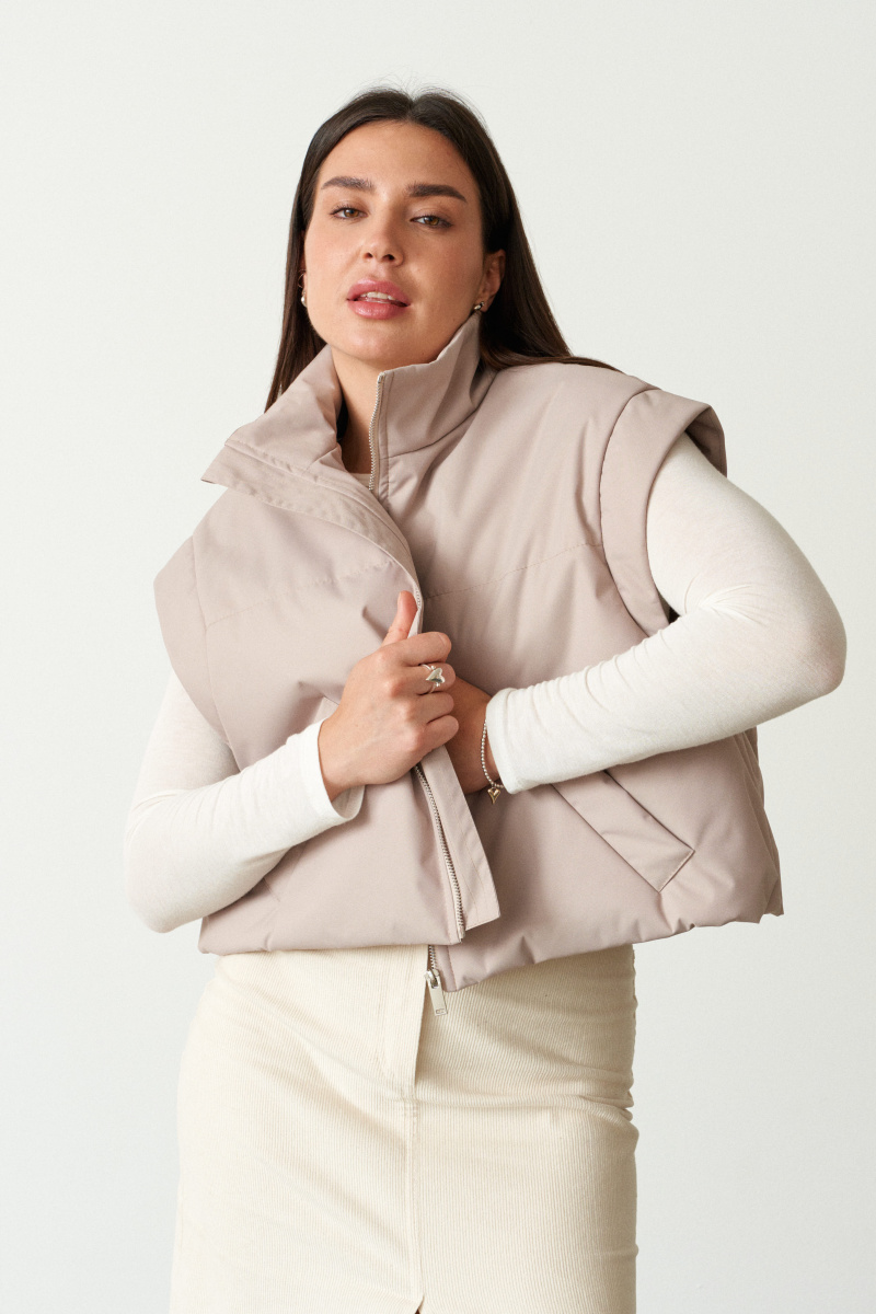 Размер жилетки единый. Параметры модели: рост 174 см, обхват груди 87 см, обхват талии 71 см, обхват бедер 101 см.