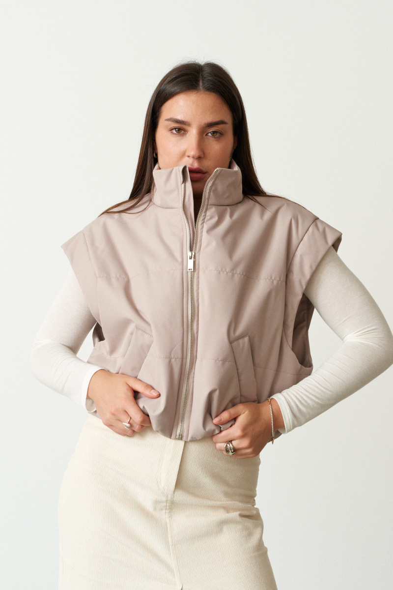 Утеплитель изософт прошит цельным полотном и не деформируется при стирке. По низу расположена кулиска, позволяющая регулировать обьем и подчеркивая стиль изделия. Удобно расположенные карманы добавляют функциональности.