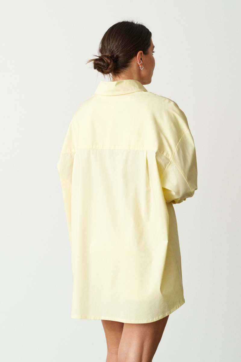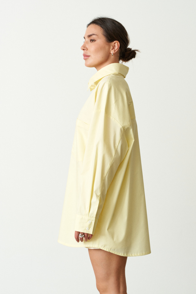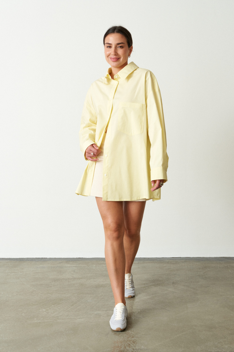 Данная модель свободного кроя оверсайс, выполнена в едином размере. На груди карман. На спинке по бокам складки, придающие модели эфектный обьем. Состав ткани содержит хлопок, полиэстр и спандекс, делая рубашку комфортной, прочной и держащей форму.