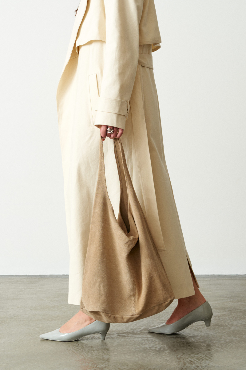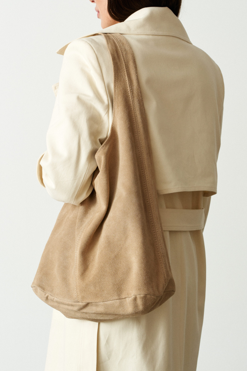 Вместительный шопер, выполнен из натуральной мягкой замши, без подладки, c мягким дном.