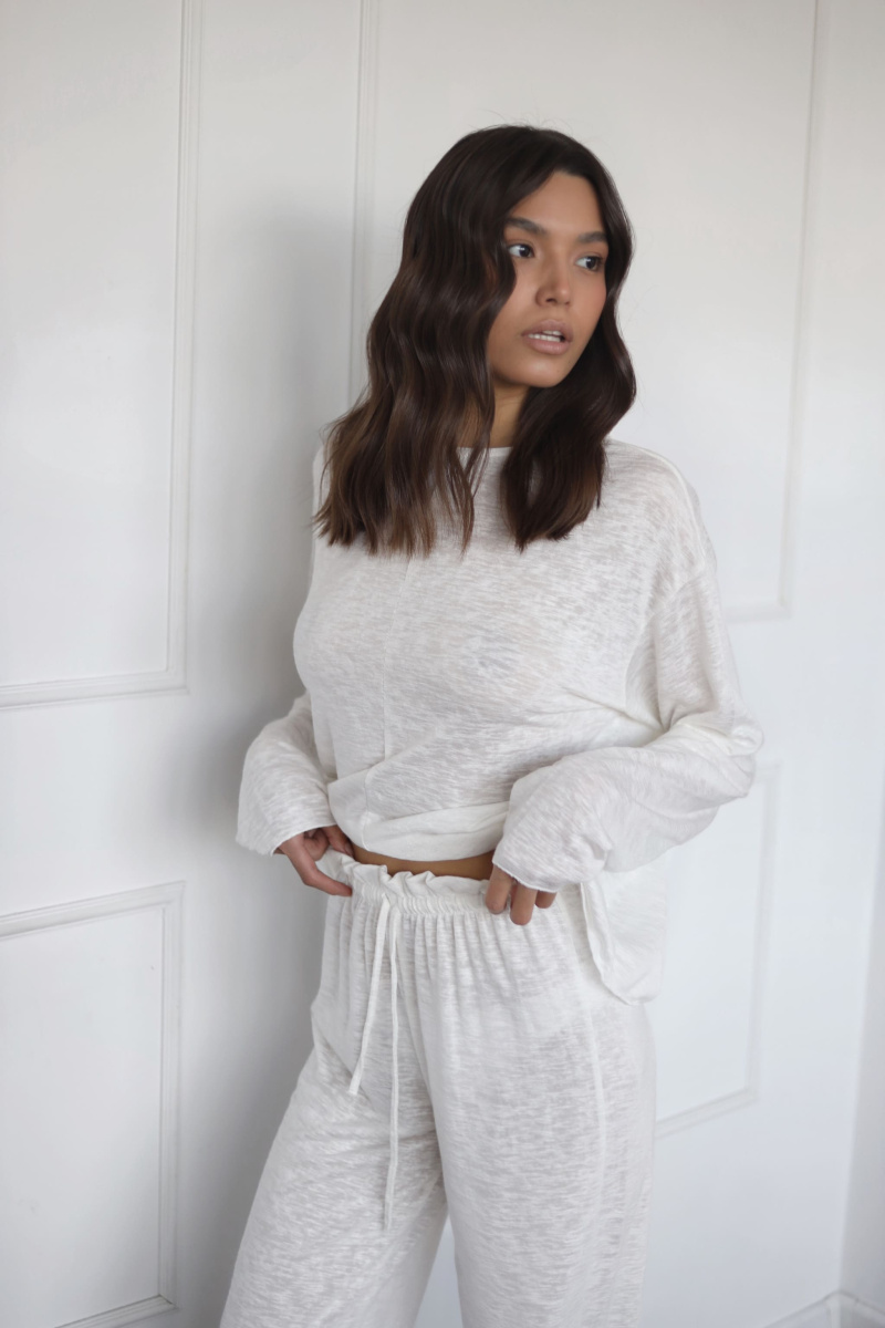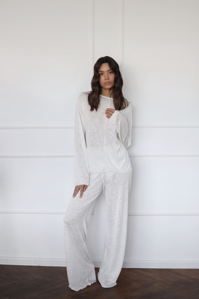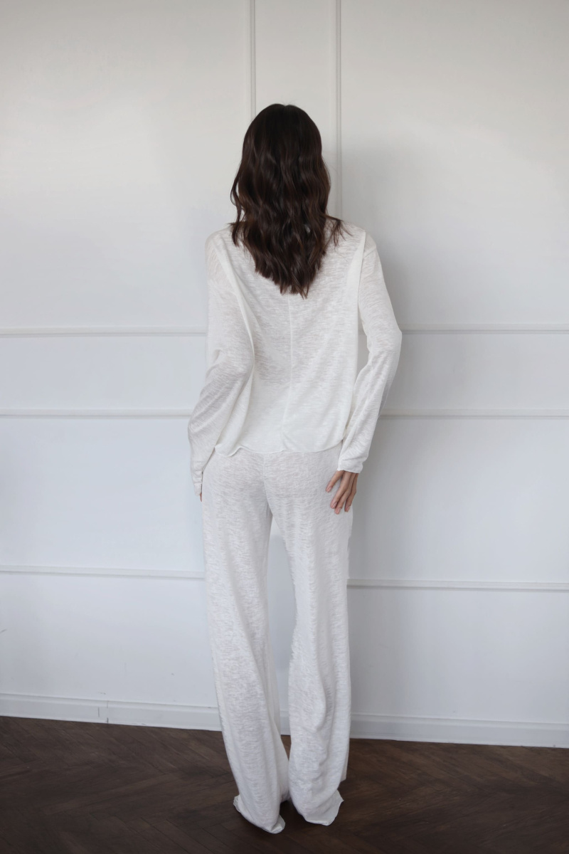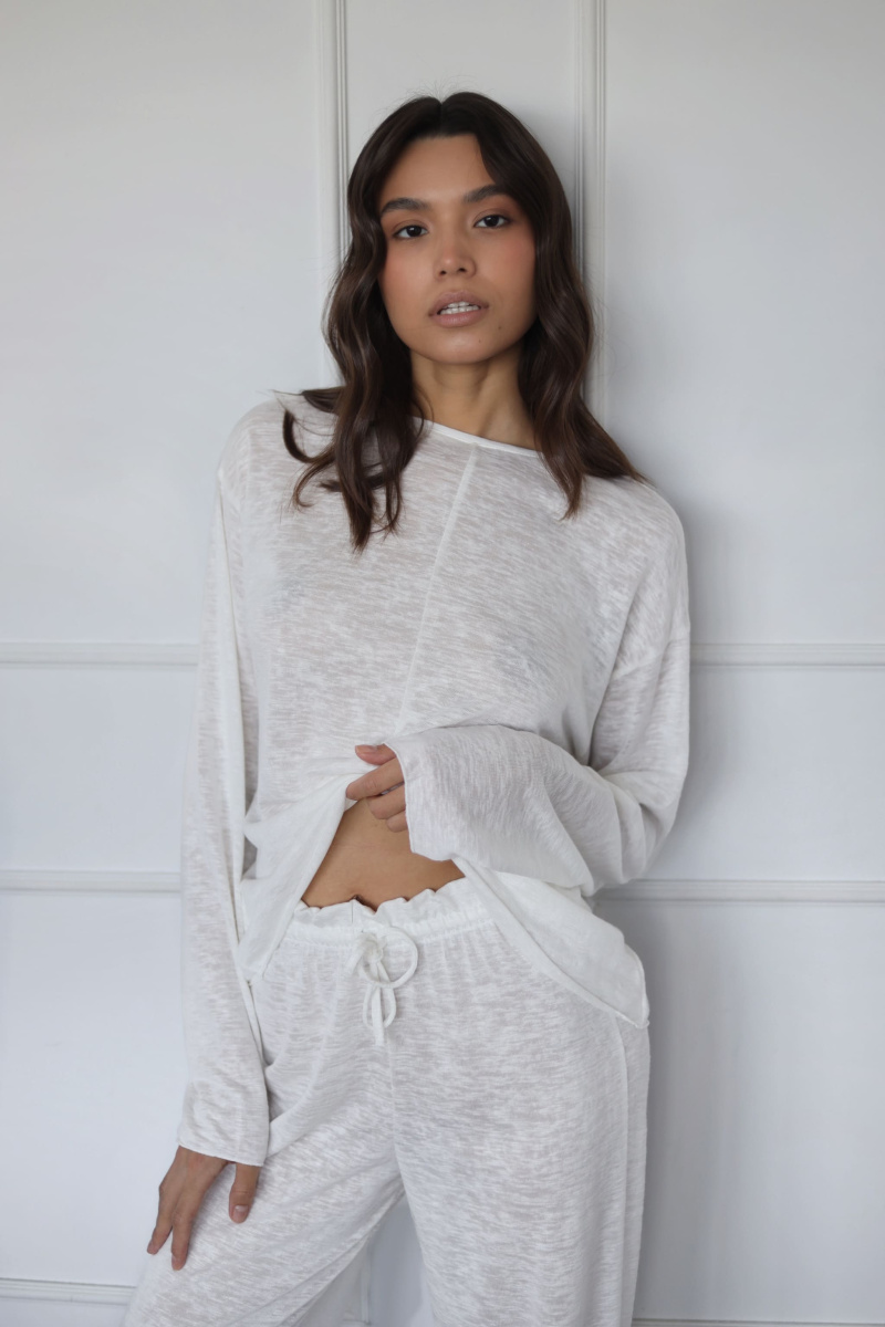Полупрозрачный базовый лонгслив со спущенной линией плеча и декоративным швом спереди, отлично подходит не только для комфортного времяпровождения дома, но и для повседневной жизни, для пляжного отдыха.