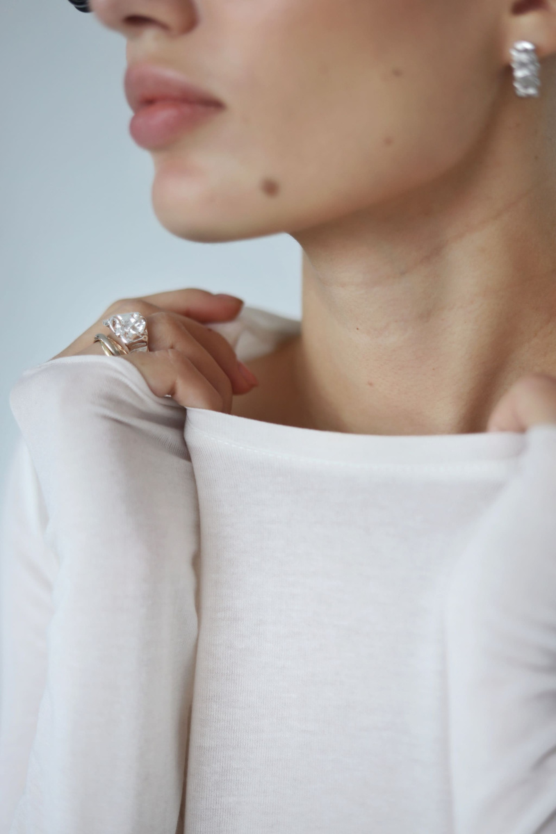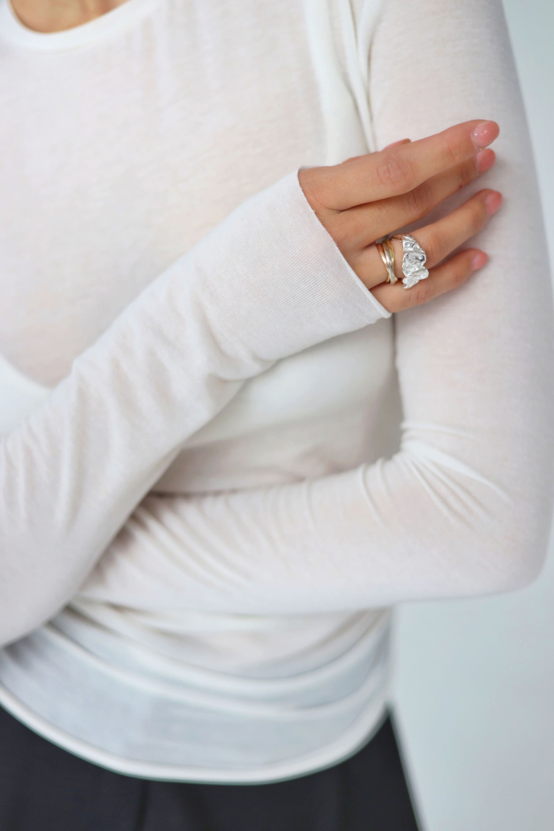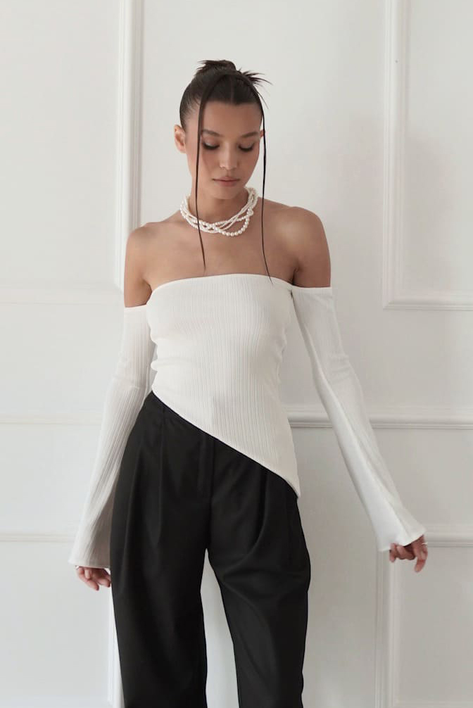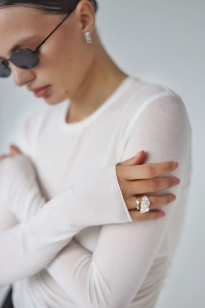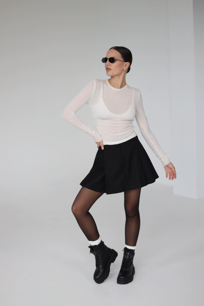 Базовый лонгслив из нежной полупрозрачной ткани со сборками по боковым швам.