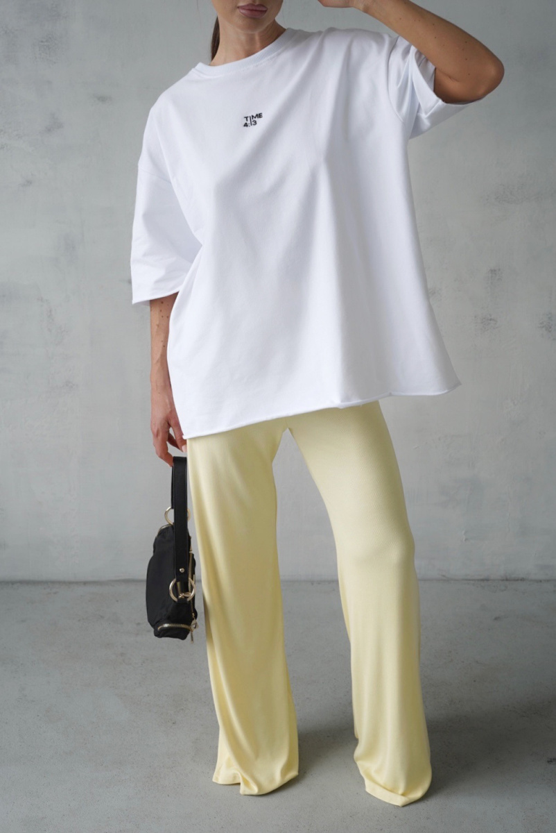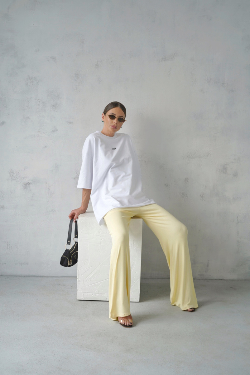 Брюки клеш на высокой посадке из мягкой и приятной вискозной лапши без карманов с отстроченной резинкой.