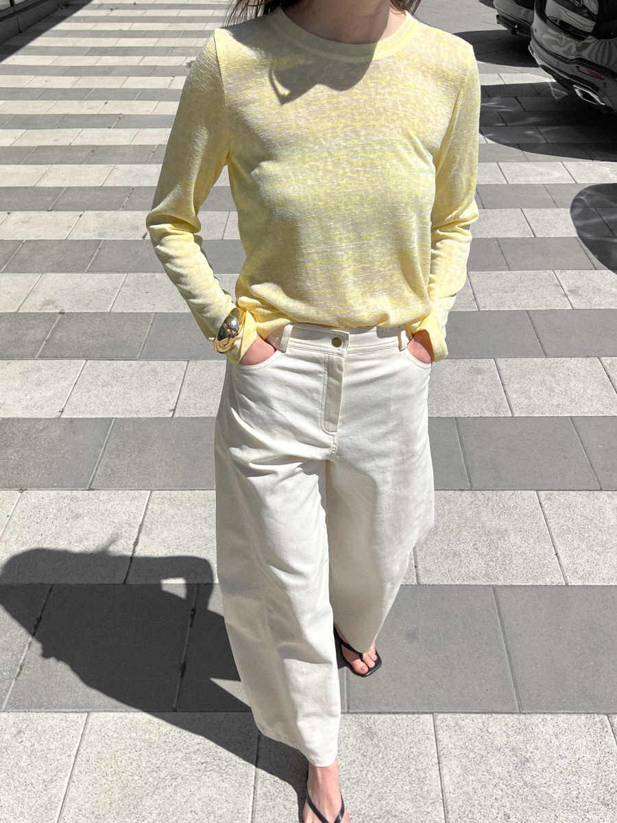 Брюки-бананы Denim имеют мягкую посадку и свободный крой в виде 90-х для комфорта и стиля. Нежный молочный оттенок — универсальная база для любых образов. Удобная высокая такая подчеркивает силуэт, сохраняя расслабленный крой, а легкий стретч обеспечивает свободу движений без потери формы.