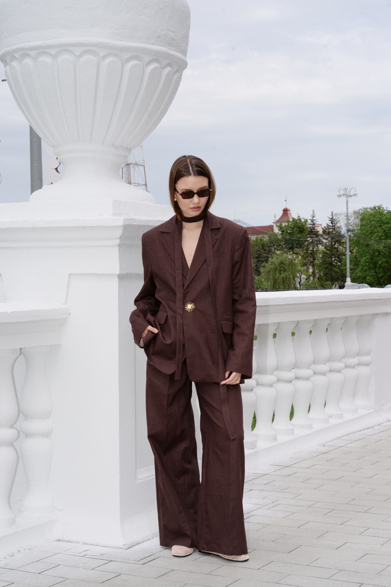 Идеальное дополнение к вашему гардеробу! Наш жакет из натурального льна в шоколадном оттенке — это комфорт и стиль в каждой детали. Акцентная пуговица добавляют изюминку, подчеркивая индивидуальность жакета. Легкий, дышащий материал обеспечивает приятную прохладу, а универсальный цвет легко сочетается с любыми брюками или юбками.