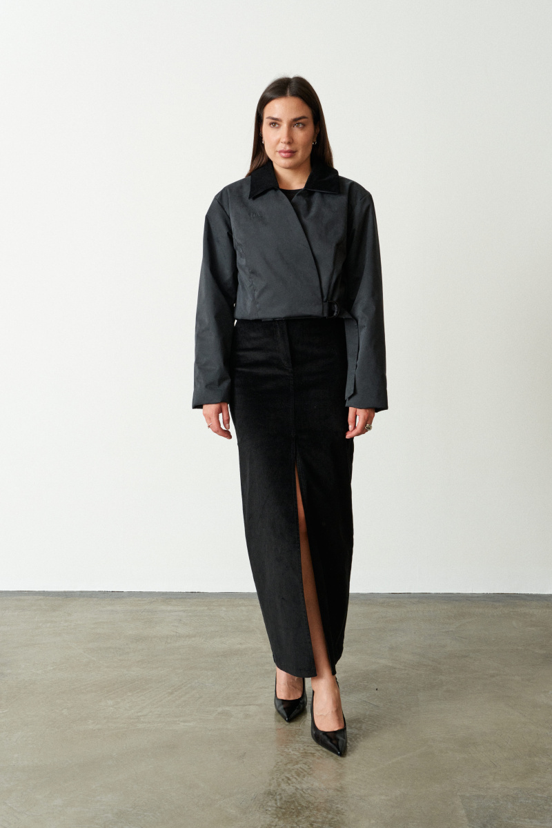 Идеально сочетается с нашими трикотажными костюмами W25 и юбками макси из штрокса.