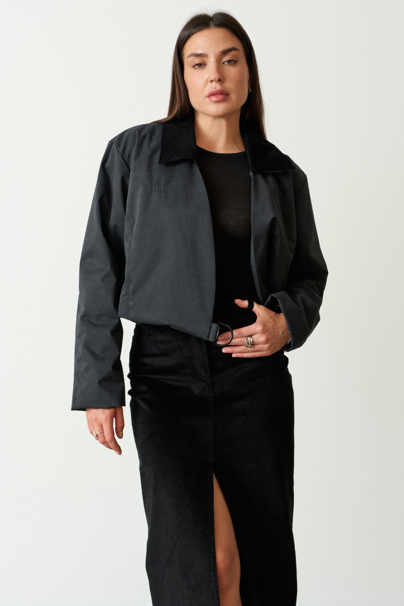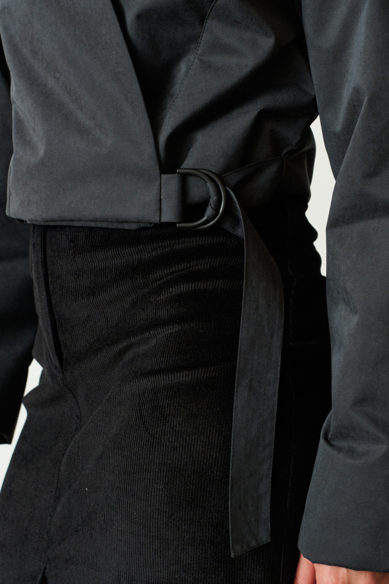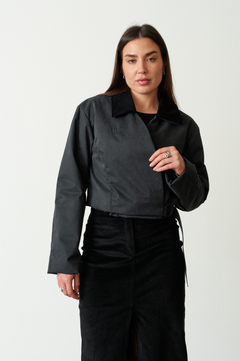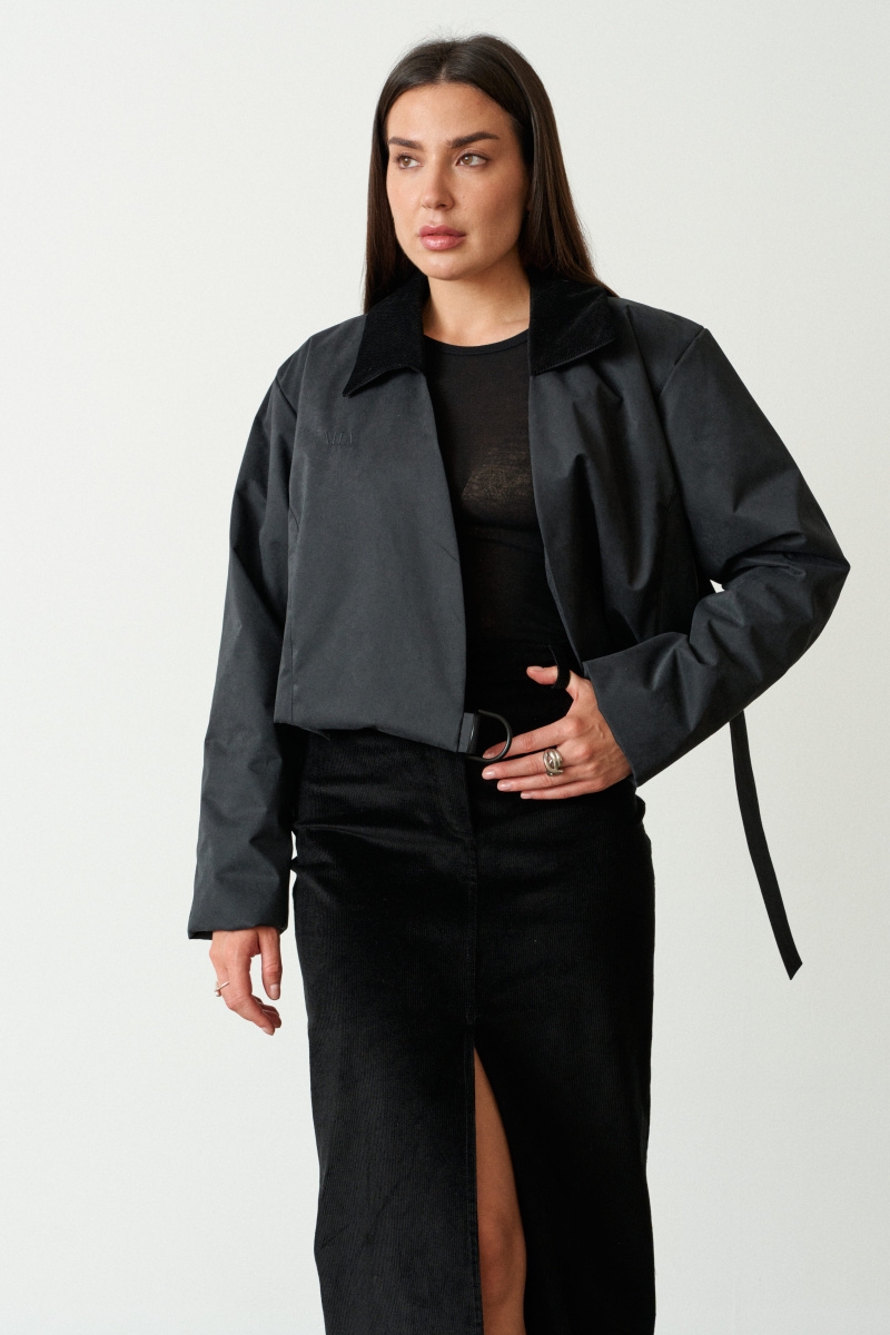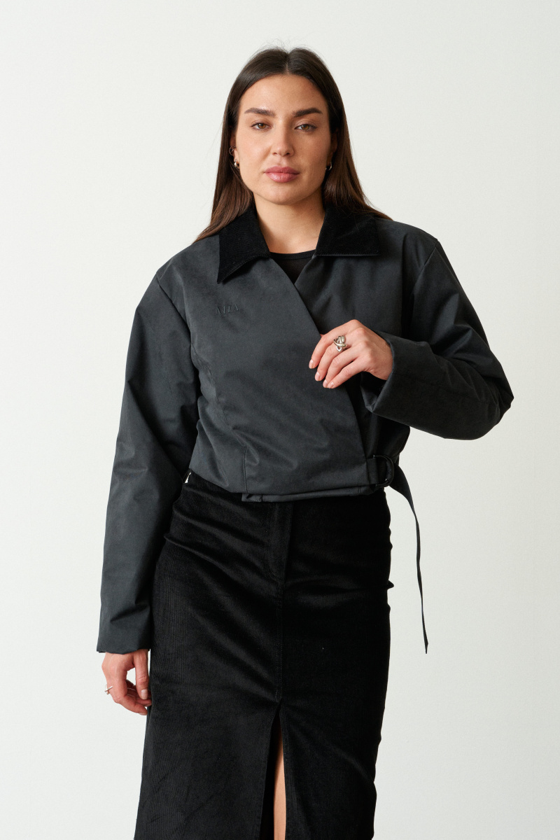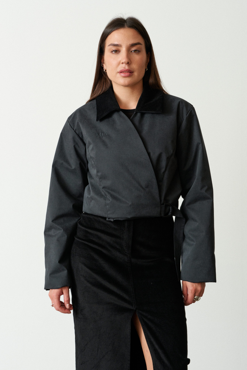 Укороченая приталенная куртка на запах выполнена в едином размере из непромокаемой, непродуваемой, обладающей высоким воздухообменом мембраны.
