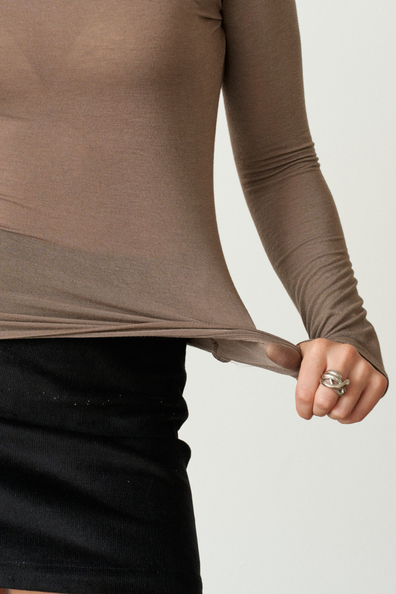 Лонгслив с горлом (голый) - полупрозрачный лонг с горлом, невесомый и очень тактильно приятный. В составе вискоза с добавлением кашемира.  Универсальная база в любом гардеробе.