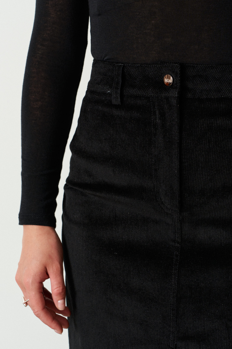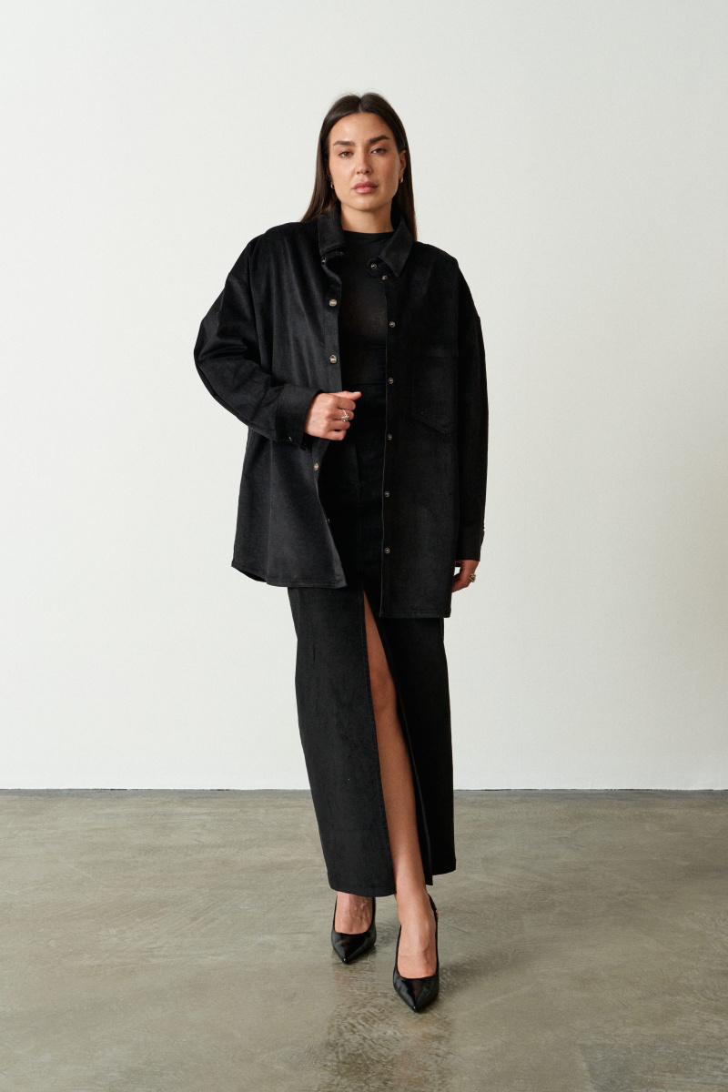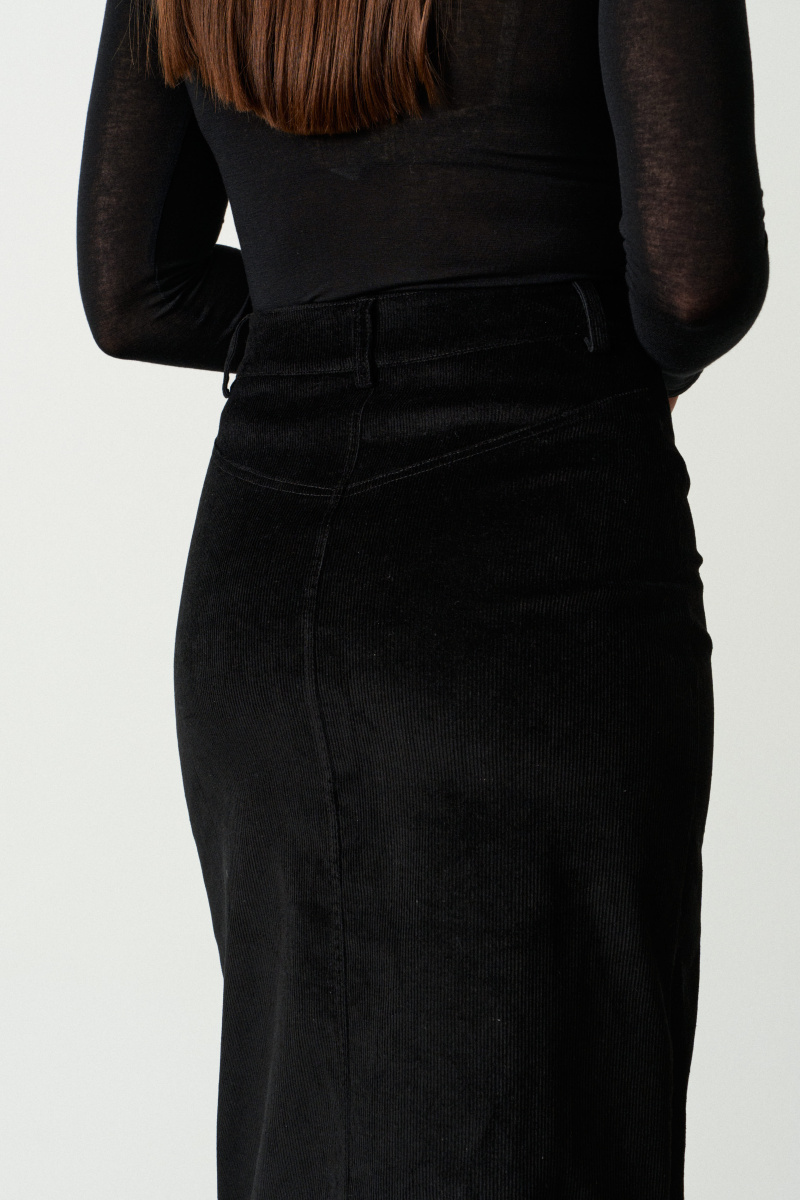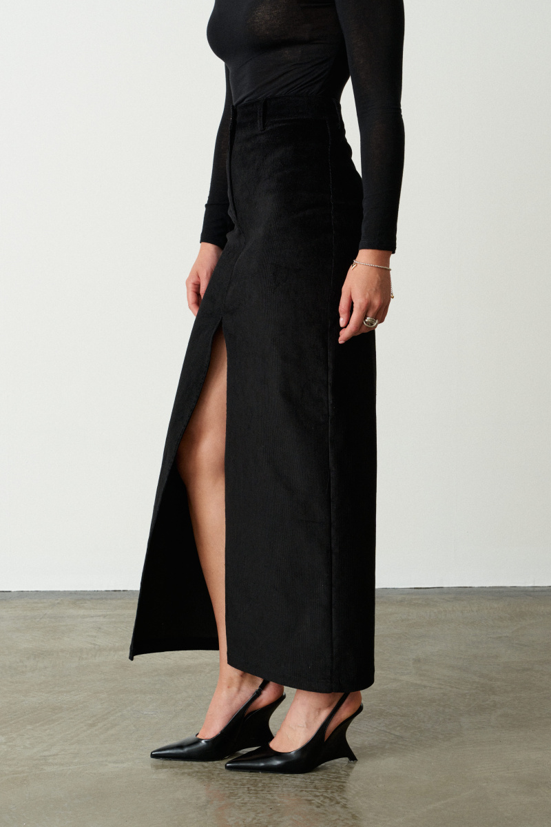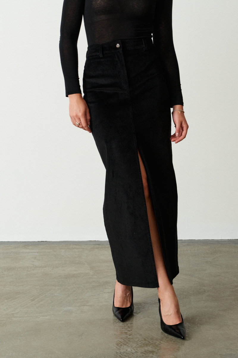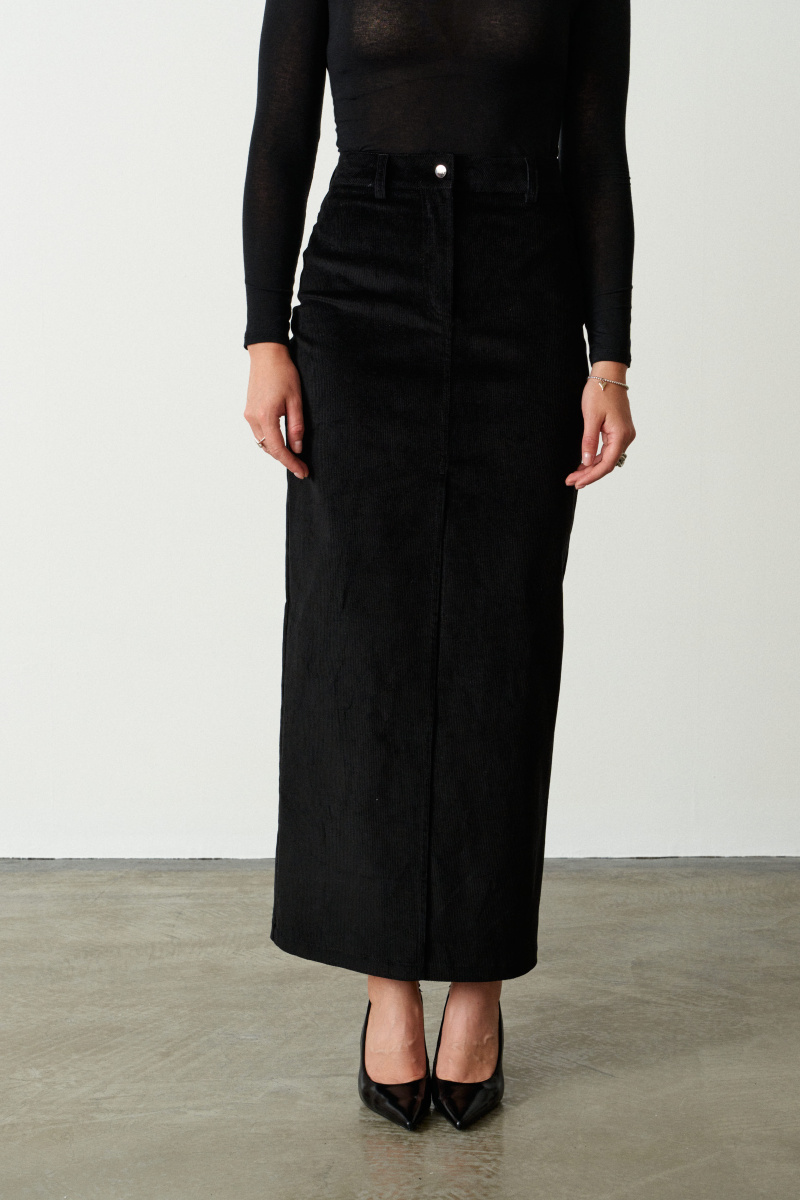 Прямой крой с разрезом спереди добавляет изделию утонченности и делает его удобным и вытягивающим силуэт.