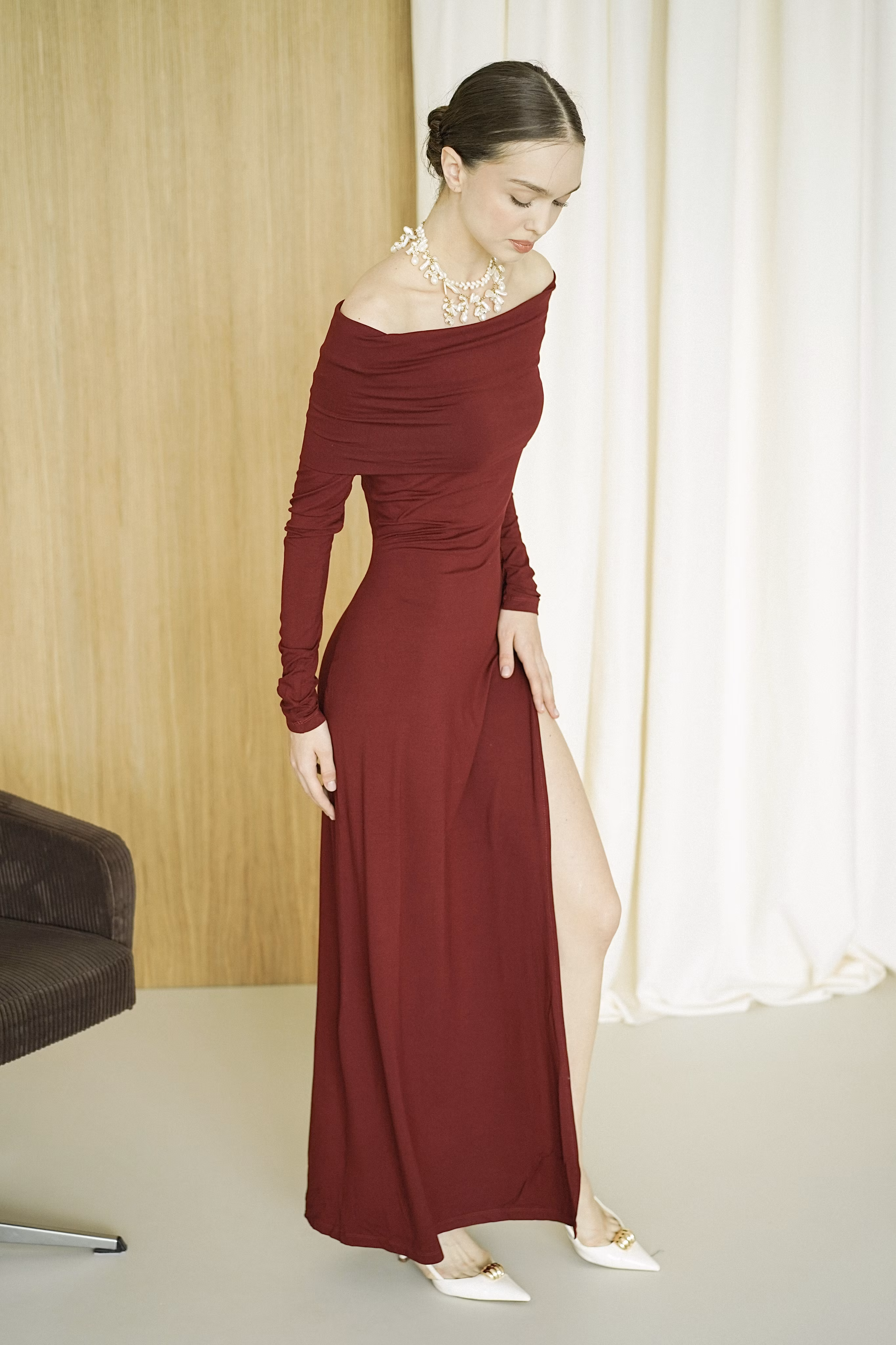 Элегантное платье в винном цвете — стильное и выразительное решение для особых случаев. Благодаря открытым плечам и изящному разрезу на ноге оно создает образ женственности и утонченности. Классический крой подчеркивает вашу фигуру, а насыщенный винный оттенок придает образу глубину и элегантность. Мягкий, приятный на ощупь материал обеспечивает комфорт и свободу движений. Это платье идеально подойдет для вечерних мероприятий, романтических свиданий или торжественных событий, позволяя вам выглядеть ярко, уверенно и незабываемо.